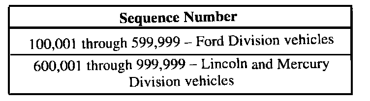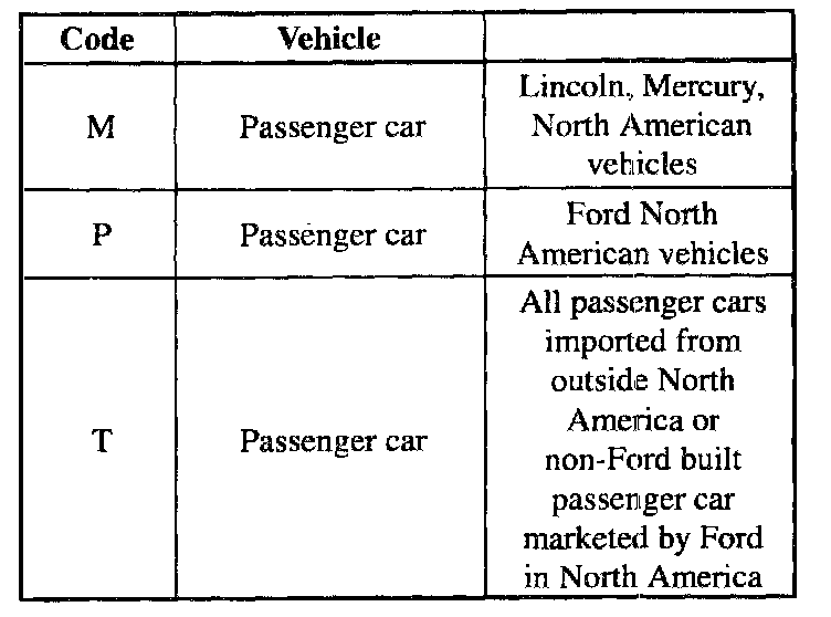 Manufacturer Specification (Vin Position 5):