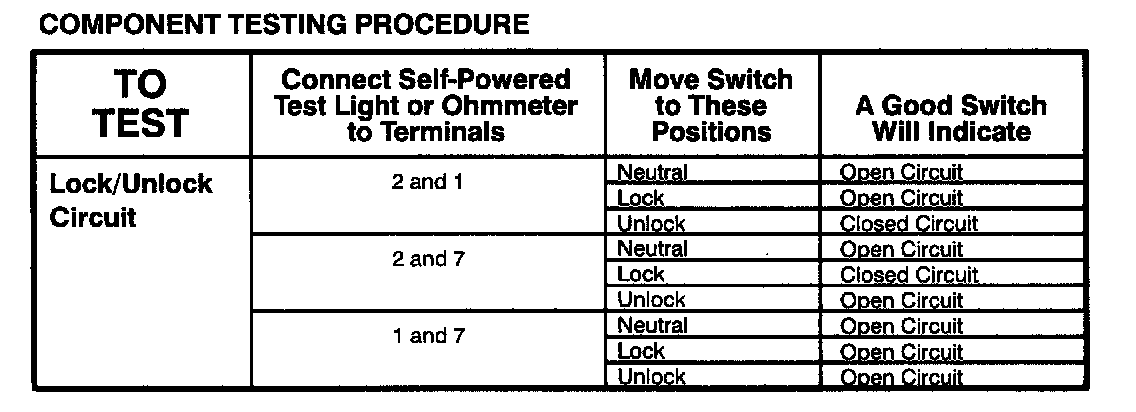 Power Door Lock Switch: Testing and Inspection