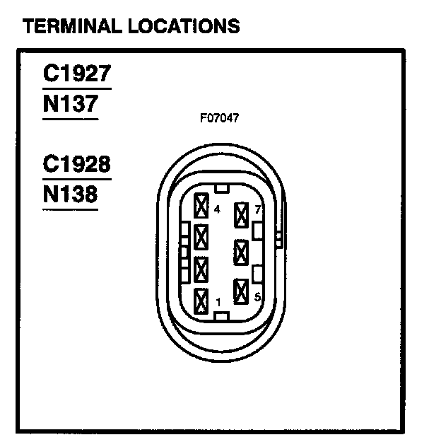 Testing information for each component includes a schematic with component terminal locations and step-by-step test procedures. Component terminals are identified by letters or numbers that may be marked on the component or callout if there is no mark on the component.