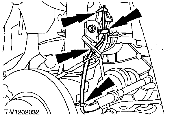 5. Disconnect the wheel sensor wiring from the support bracket and clips.