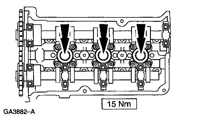 ^ Apply a 10 mm diameter dot of sealer onto cylinder block at the indicated areas.