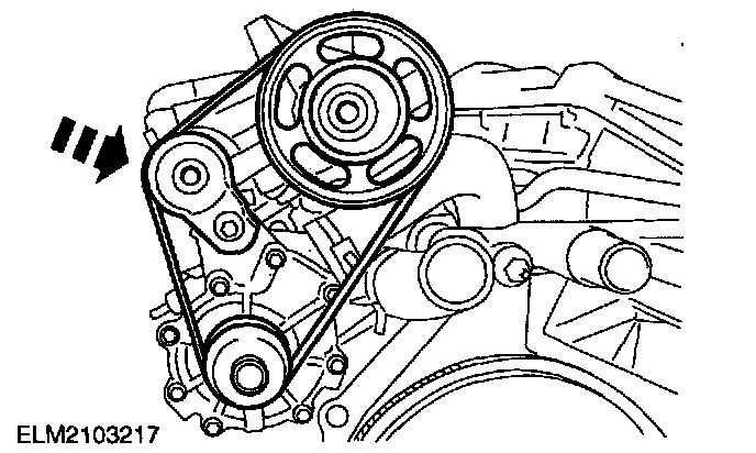 ^ Rotate the belt tensioner clockwise to relieve tension on the belt.