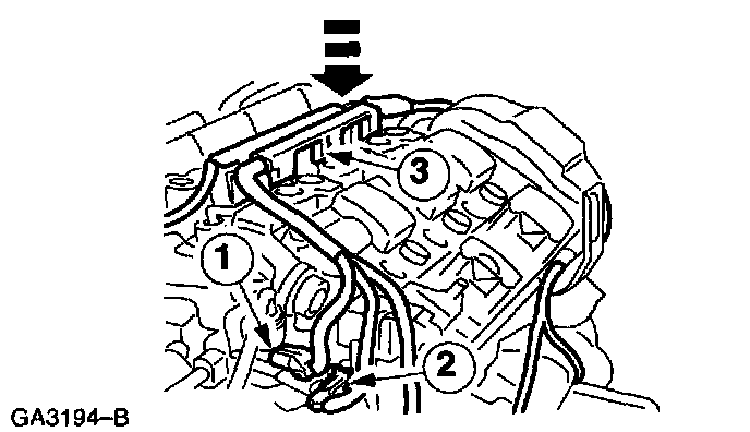 1 Position the vacuum harness and connect the two vacuum supply hoses to the intake manifold.