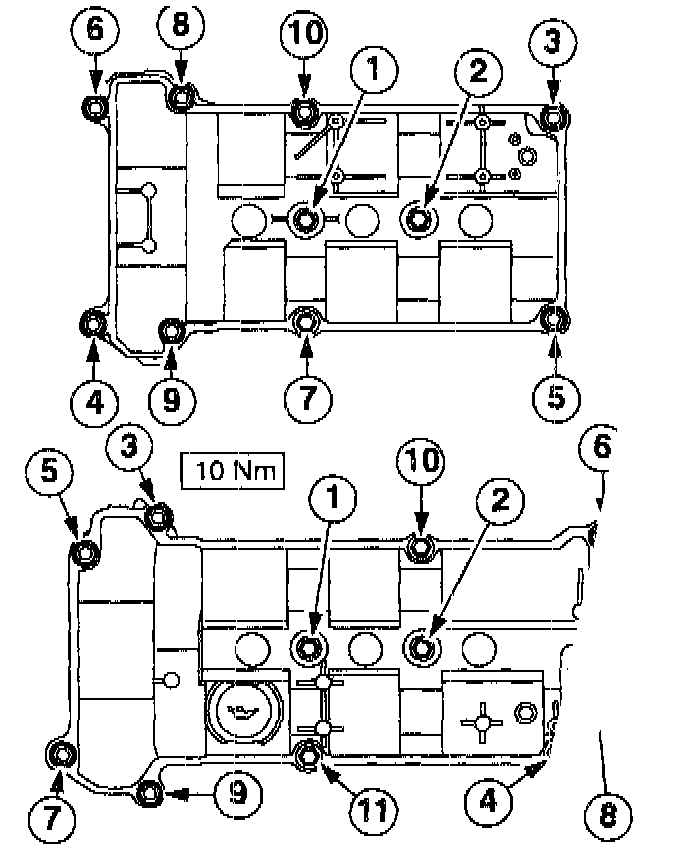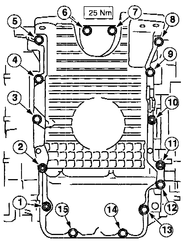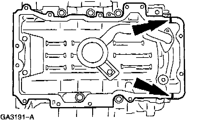 NOTE: Install the oil pan and tighten the bolts within six minutes of applying sealer.