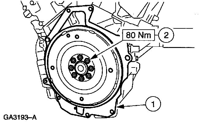 2 Install the flywheel and tighten the bolts working diagonally.