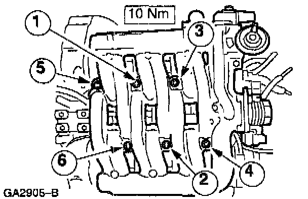 Install the upper part of the intake manifold.