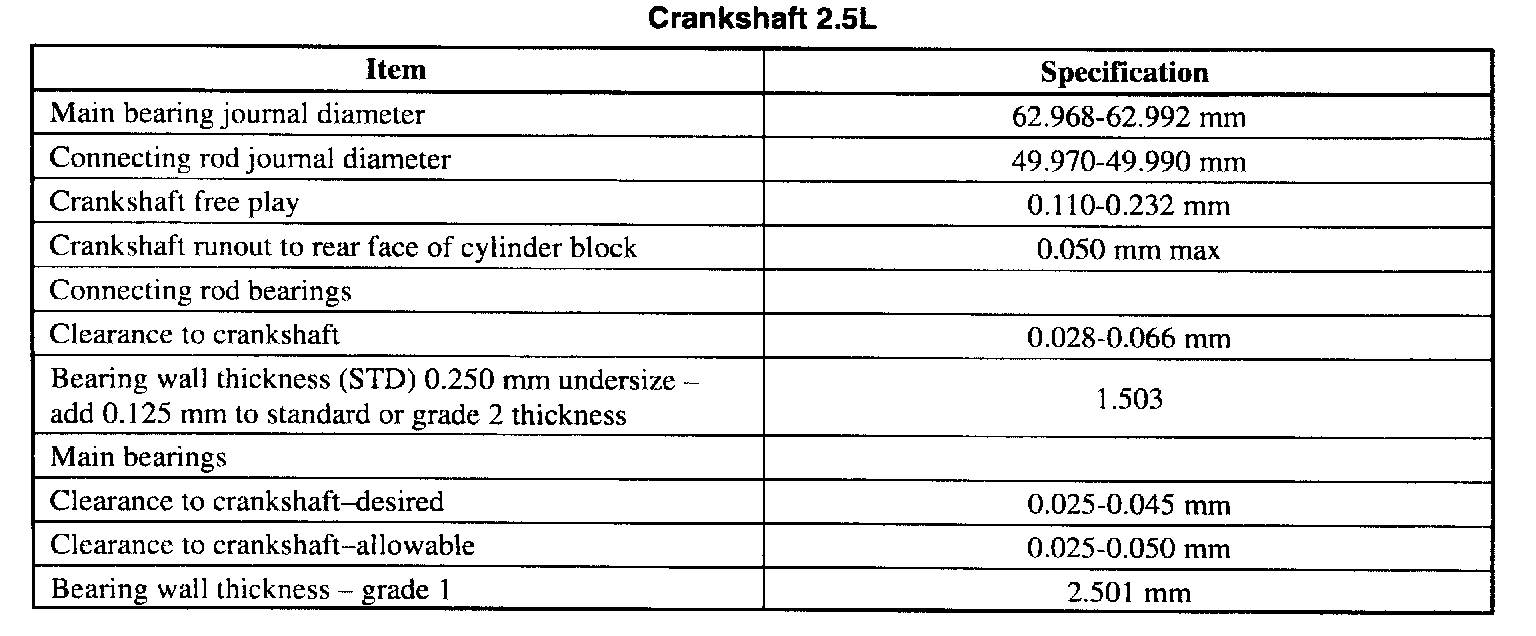 Engine Rebuilding Specifications