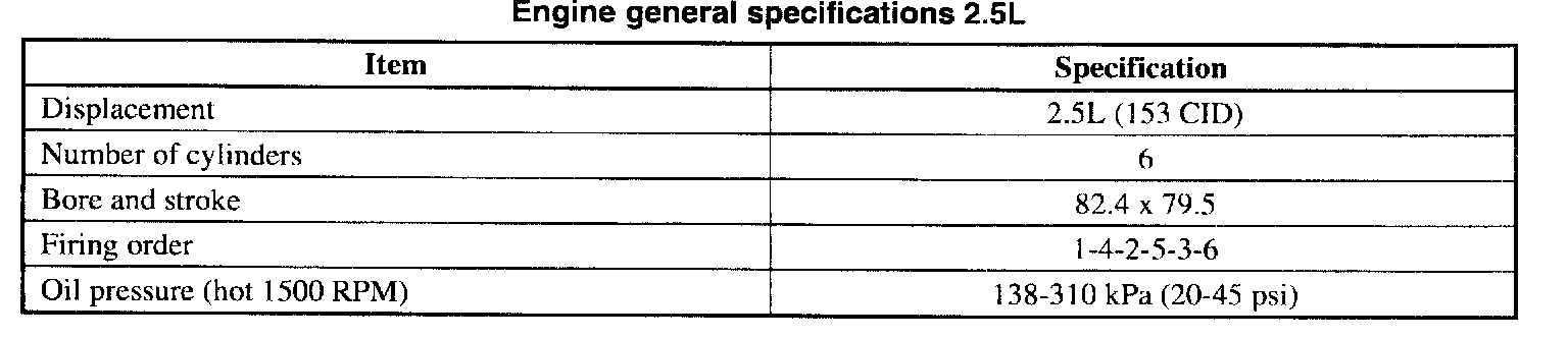 General Engine Specifications