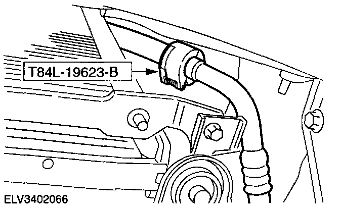 6. Using the special tool disconnect the upper tube from the suction accumulator/drier to the A/C compressor.