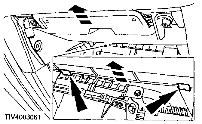 REMOVAL1. Open glove compartment, press the sides inward and lower the glove compartment to the floor.