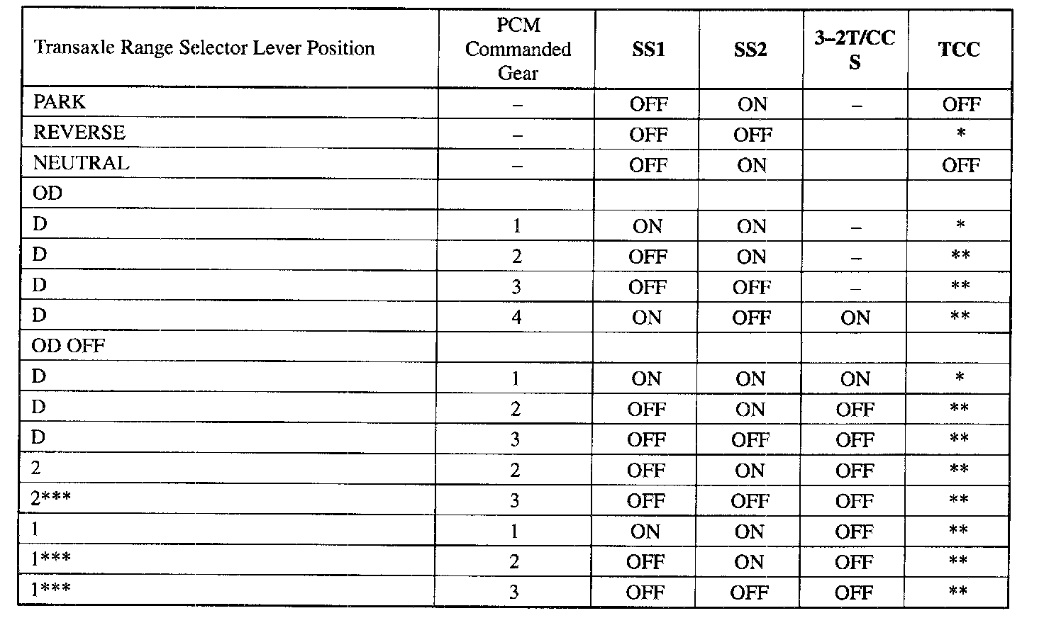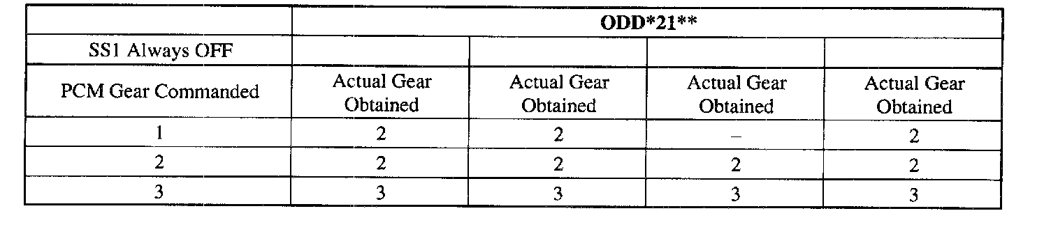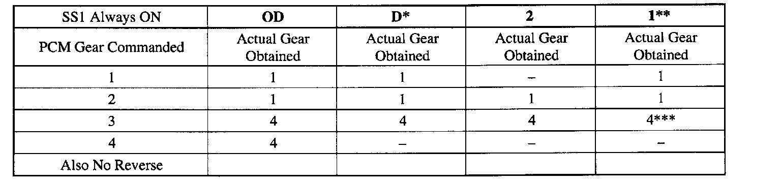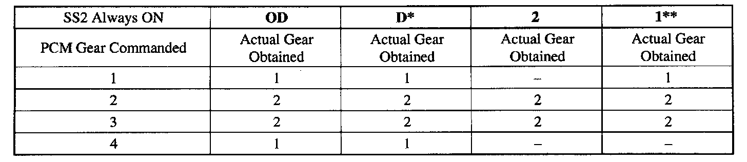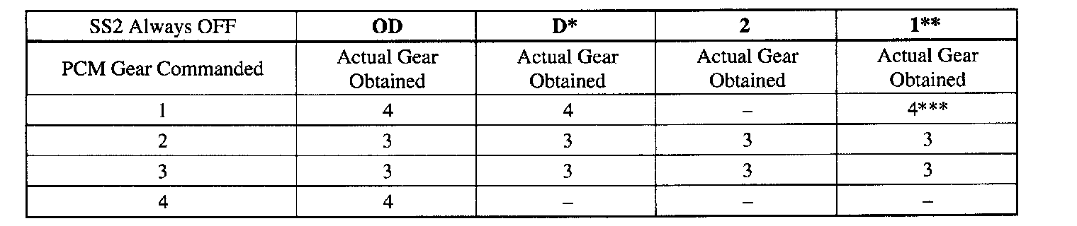 Shift Solenoid Failure Mode Chart "Always OFF"