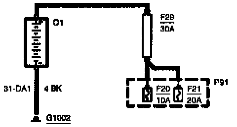 A thin dashed box on a diagram indicates a pan of the circuit which is only present for a particular vehicle model, country, or option. These qualifiers are shown next to the box on the diagram.