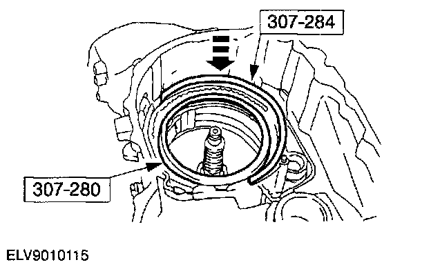 ^ Lubricate seals and piston bore with clean MERCON or MERCON V automatic transmission fluid or equivalent meeting FORD specification.