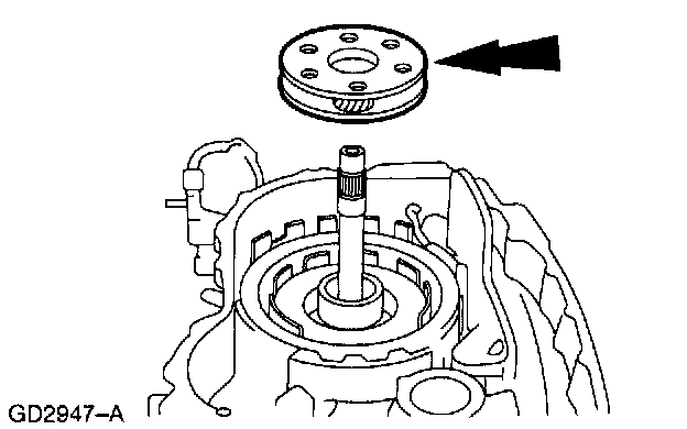 22. Install the No. 7 reverse/overdrive sun gear thrust bearing.