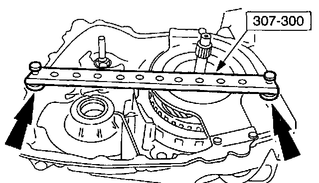 35. Using the special tools, measure the distance from the top of special tool to the bearing surface on the reverse/overdrive carrier assembly on one side of the turbine shaft.