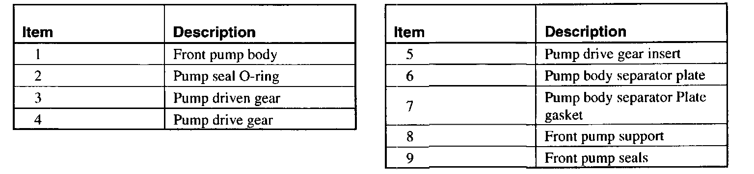 ^ Fill the pump gear cavity with MERCON or MERCON V Automatic Transmission Fluid or equivalent meeting FORD specification to the top of the gears.