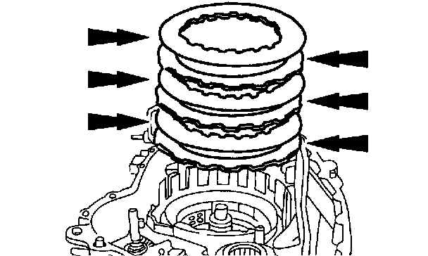 ^ Inspect the friction plates for partially stripped, stripped, broken or bent spline teeth, burnt, worn or flaked off friction material, and warped or bent friction discs.