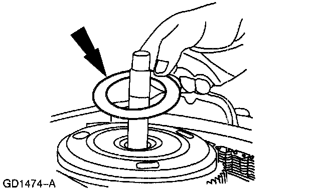 Remove the No. 10 driven sprocket thrust washer from the reverse/overdrive ring gear assembly.