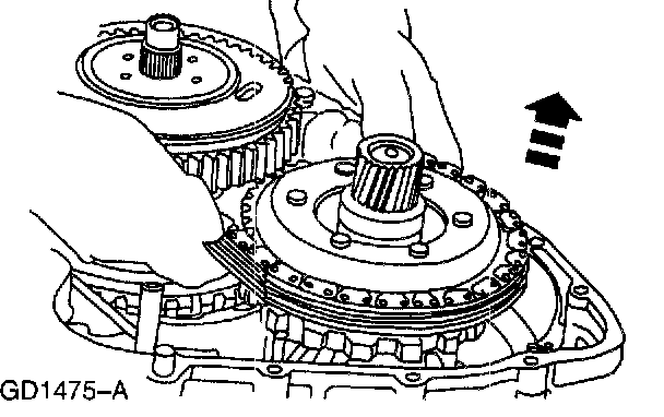 Remove the reverse/overdrive carrier assembly with captured No. 8 thrust bearing.