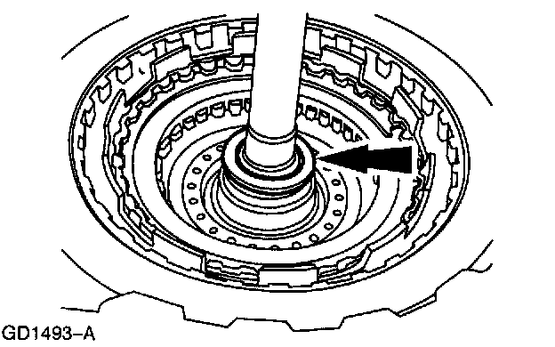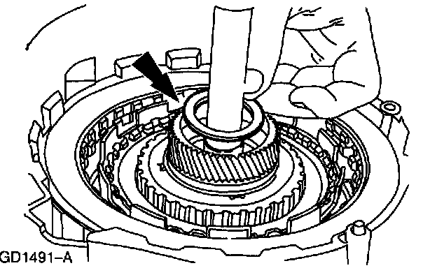 61. NOTE: The turbine shaft thrust bearing may adhere to the forward one-way clutch and low/intermediate sun gear.