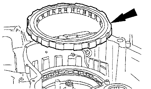 Remove the chain drive, reverse/overdrive ring gear, and driven sprocket assembly.