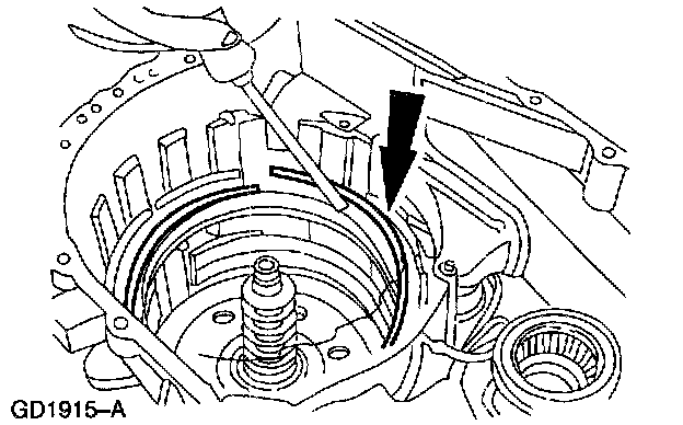 ^ Inspect the intermediate and overdrive band assembly for damage and wear.