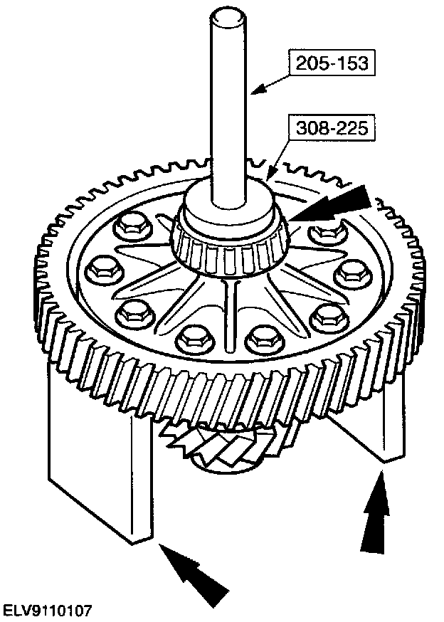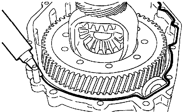 6. CAUTION: Do not use the bearing as a support. Support the differential under the gear.