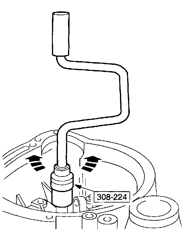 ^ Using the special tool 308-224, turn the output shaft back and forth and at the same time press down.