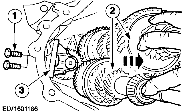 2 Rotate the third/fourth gear selector fork and remove it, then remove the fifth/reverse gear selector fork.