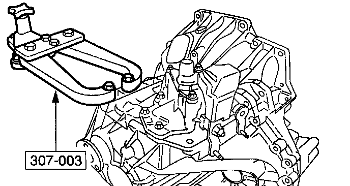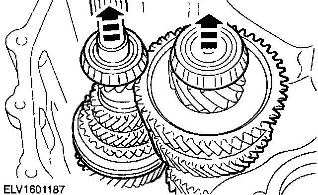 2 Swing the input shaft and output shaft to one side (the reverse gear idler shaft mounting should lift up).