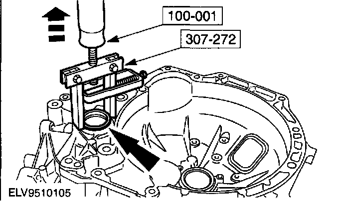 Using the special tools, remove the bearing outer races from the differential, the input shaft and the output shaft.
