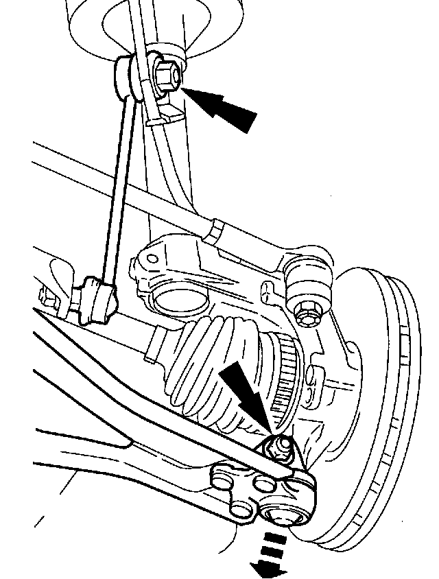 ^ Disconnect the ABS wiring harness bracket from the suspension strut.