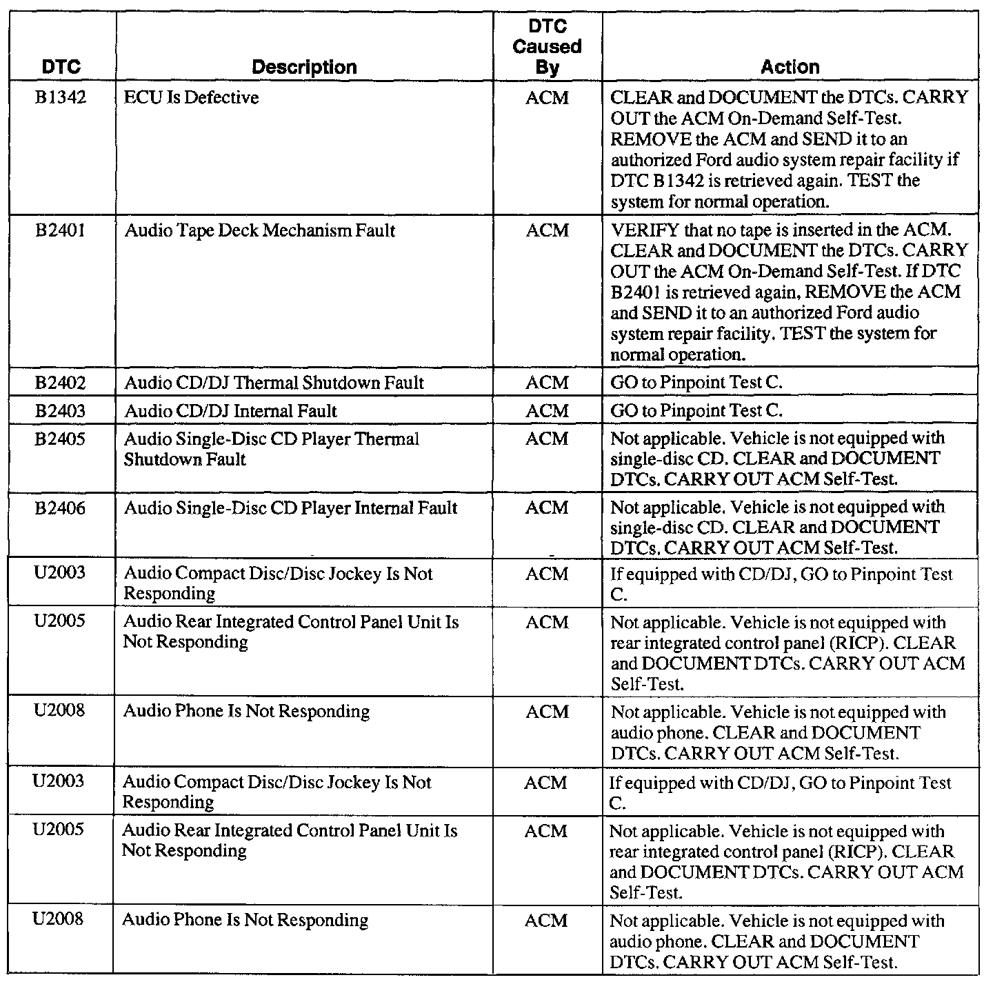 B1342 - B2406, U2003 - U2008: