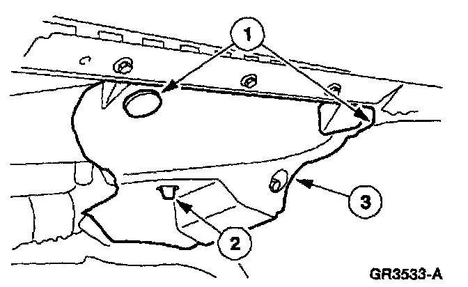 18. Position the front fender splash shield away from the dash panel.