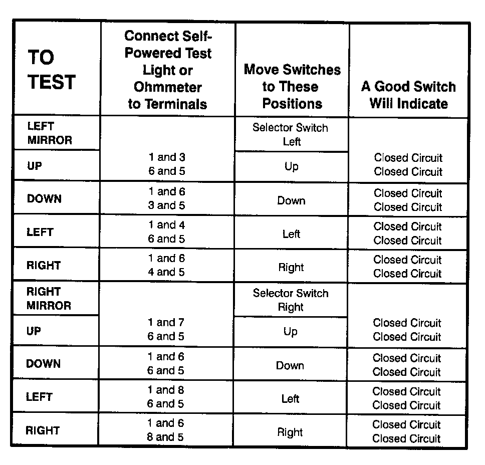 Power Mirror Switch: Testing and Inspection