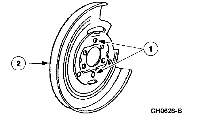 1. NOTE: Because the rear wheel brake disc shield is held in position by the four rear wheel disc brake adapter bolts, new rivets are not required.
