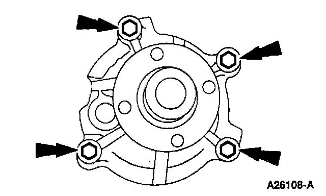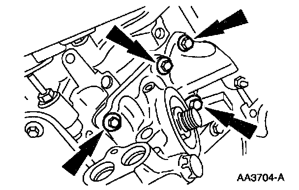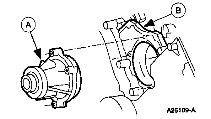 70. Remove the (A) water pump from the (B) cylinder block.