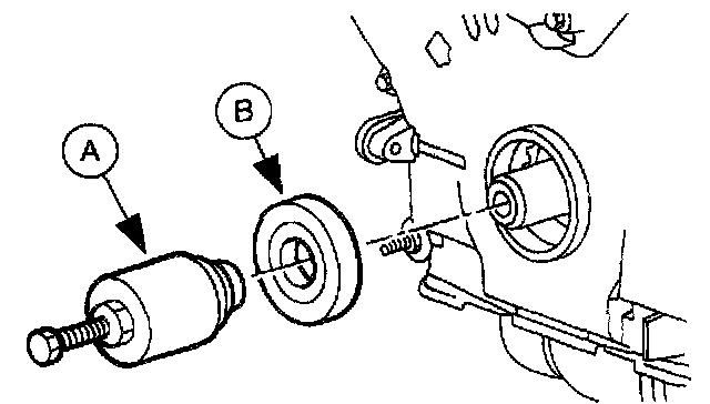 72. Use the (A) Front Cover Seal Remover to remove the (B) crankshaft front seal.