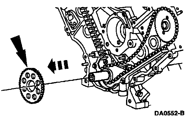 ^ Remove the RH timing chain and outer crankshaft sprocket from the crankshaft.