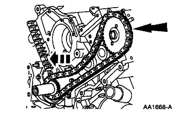 ^ Remove the RH timing chain from the camshaft sprocket.