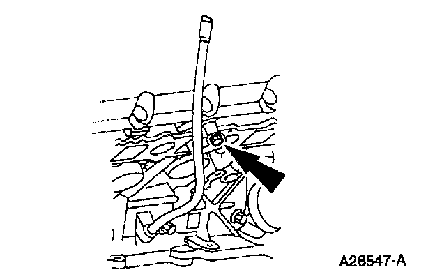 82. Remove the bolt and the oil level indicator tube.