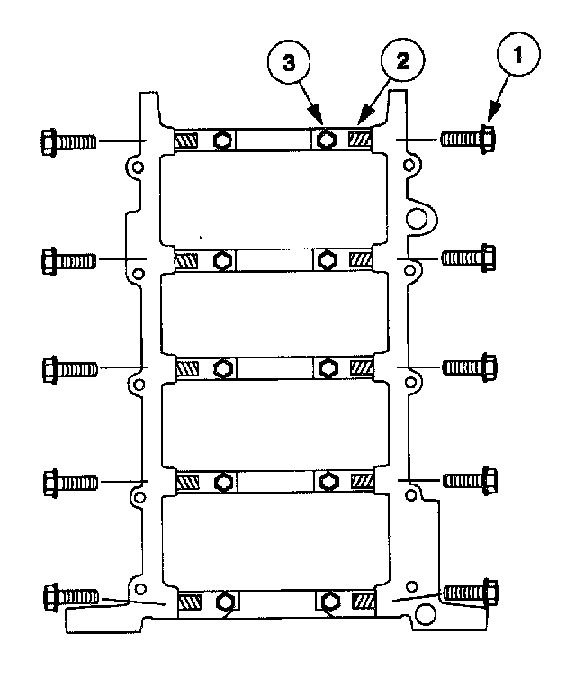 1 Remove and discard the cross-mounted main cap bolts.