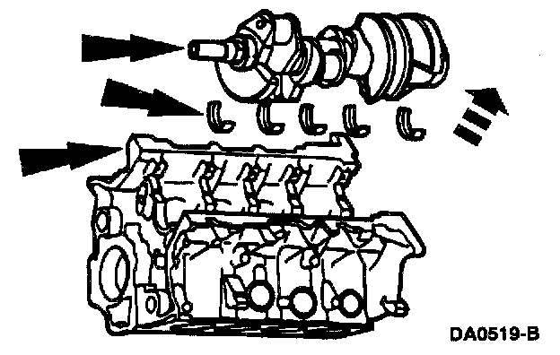 92. Remove the five main bearing caps and the lower crankshaft main bearings.