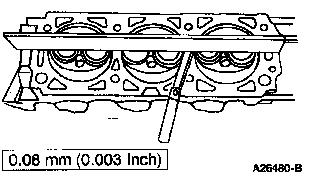 Use a straightedge and a feeler gauge to inspect the cylinder head for flatness.