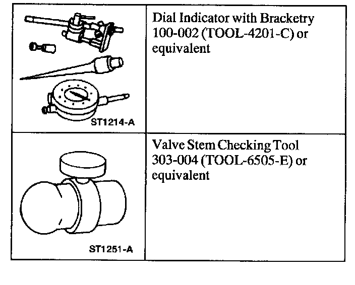 1. NOTE: If necessary, use a magnetic base. Install a Valve Stem Clearance Tool on the valve stem and install a Dial Indicator with Bracketry. Lower the valve until the Valve Stem Clearance Tool contacts the upper surface of the valve guide.