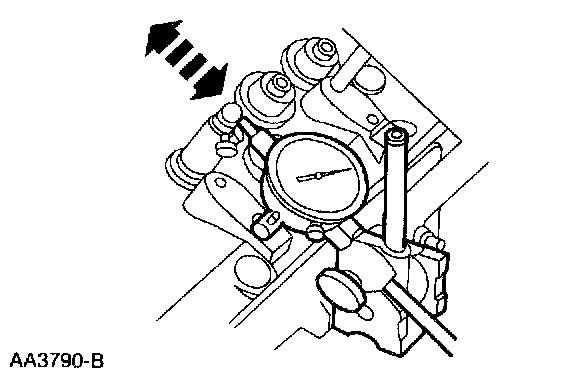 NOTE: Valve stem diameter must be within specifications before checking valve stem to valve guide clearance.