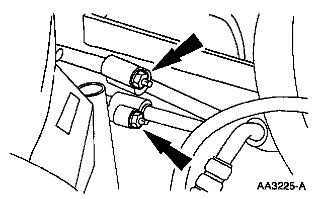 45. Connect the lines to the A/C condenser core and install the nuts.