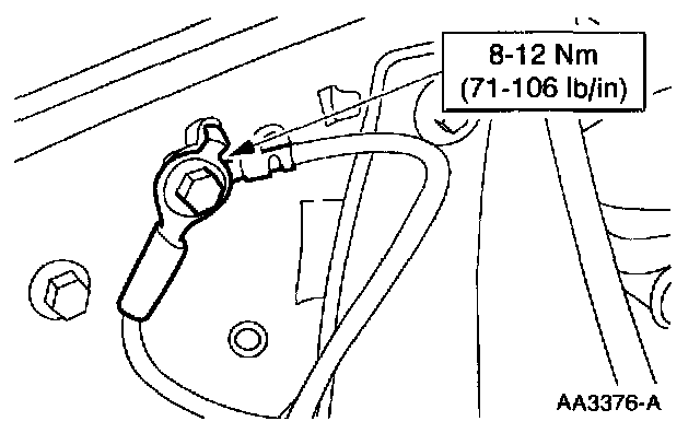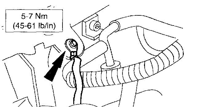 38. Position the wire and install the nut; connect the electrical connections at the RH inner fender.