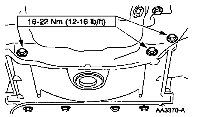 3. NOTE: If not secured within 4 minutes, sealant must be removed and sealing area cleaned with Metal Surface Cleaner F4AZ-19A536-RA or equivalent meeting Ford specification WSE-M513392-A. Allow to dry until there is no sign of wetness, or 4 minutes, whichever is longer. Failure to follow this procedure can cause future oil leakage.