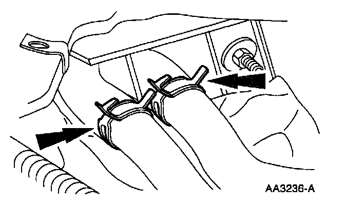 33. Position the accelerator cable and the speed control actuator cable and install in the clips.